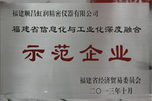 大力推進兩化融合是企業升級轉型的關鍵,其重點在于提高制造過程信息化水平,培育發展新興產業,同時激發企業的內在動力。虹潤公司積極響應黨的十七大“大力推進信息化與工業化融合”的號召,始終把信息化建設作為公司戰略發展規劃的重要內容,全方位推進兩化工作,取得了可喜的成績,得到了省市信息化部門的肯定。近日,福建省經貿委發布了閩經貿產業〔2013〕818號文件,虹潤公司被確認為首批福建省信息化和工業化深度融合示范企業。本次榮譽的獲得,有助于發揮虹潤作為兩化融合示范企業的帶動作用,樹立行業標桿,推動工業轉型升級,帶領儀器儀表行業向產業鏈高端躍進。