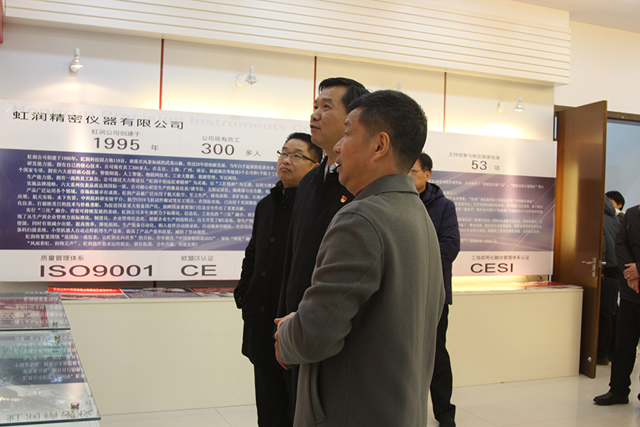 2020年12月15日,南平市袁超洪市長一行在順昌縣委書記邱建斌等人陪同下蒞臨虹潤公司考察調研。虹潤公司董事長林善平熱情接待。袁市長一行在林善平董事長陪同下參觀了虹潤公司文化展廳和產品科技展廳,林善平董事長向袁市長詳細匯報了公司的創業歷程和有關轉型升級、技術研發、智能制造、市場銷售等具體情況。袁市長認真聽取了匯報,當他聽到虹潤公司在疫情過后整體營商環境低迷的情況下,著力在電商營銷領域發力,整體銷售不降反增,同比增長20%,同時在已有六大系列儀表基礎上又新推水質分析儀、電能質量分析儀、溫濕度記錄儀、可編程繼電器等四大系列產品時,高興的說虹潤公司還要進一步創新,開拓更多的儀器儀表科技領域,進一步擴大市場。