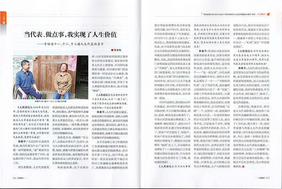 《人民政壇》報道——當代表、做點事,我實現了人生價值——專訪省十一、十二、十三屆人大代表林善平