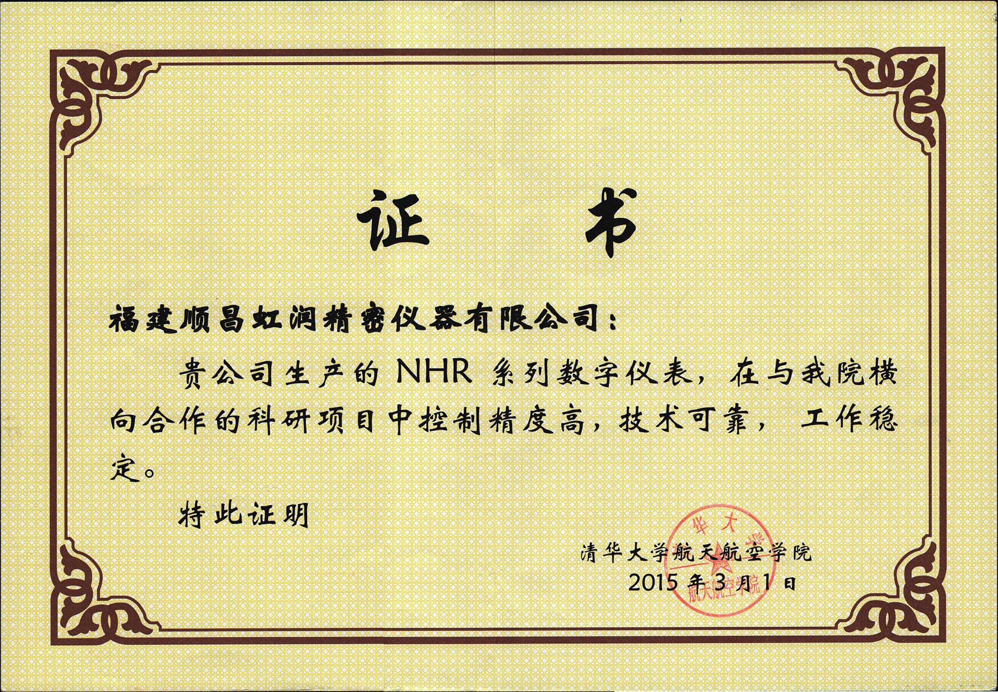 近日,由虹潤公司生產(chǎn)的自動化顯示控制儀表產(chǎn)品,成功應(yīng)用于清華大學(xué)航空航天學(xué)院橫向合作科研項目,因控制精準(zhǔn),抗干擾性強,運行穩(wěn)定,受到了清華大學(xué)航空航天學(xué)院科研項目組的廣泛好評,并向虹潤公司頒發(fā)了證書。