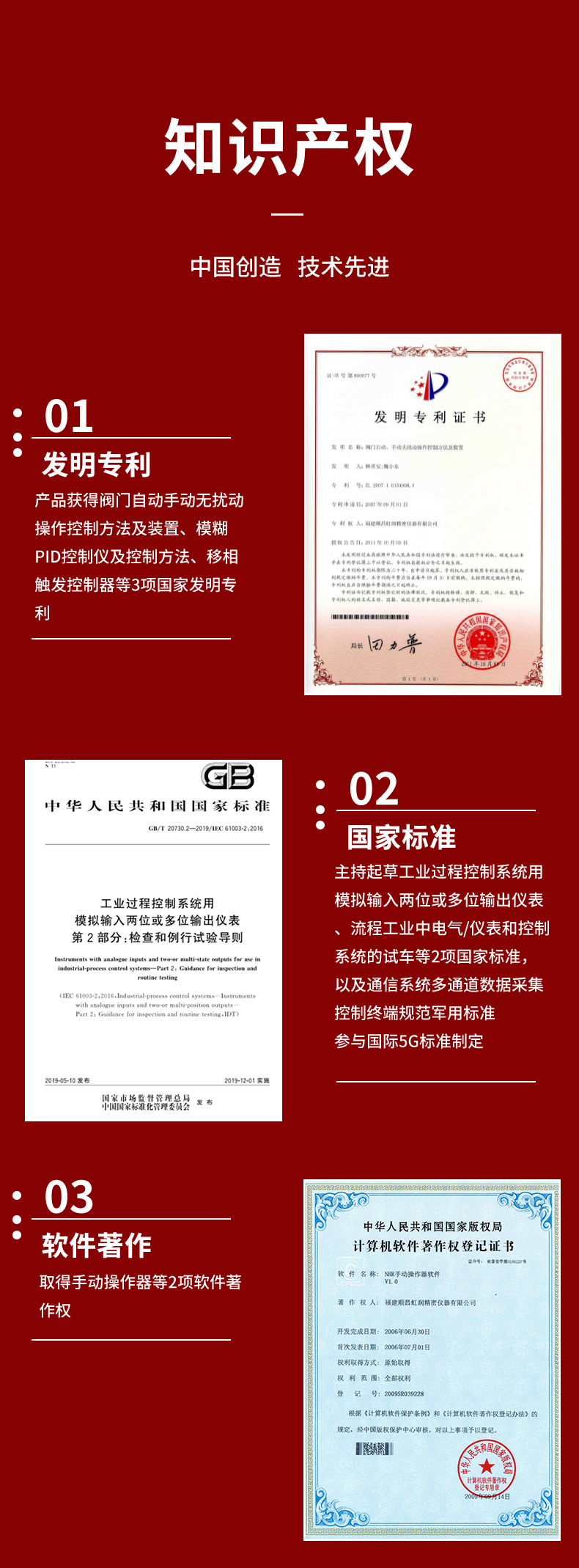 虹潤(rùn)公司是專業(yè)生產(chǎn)智能手操器的國(guó)家專精特新“小巨人”企業(yè),生產(chǎn)的手動(dòng)操作器,具有手自動(dòng)無擾切換,直接調(diào)節(jié)閥門,多種輸出類型,外接強(qiáng)制手動(dòng)功能,高抗干擾等特點(diǎn)。產(chǎn)品獲得閥門自動(dòng)手動(dòng)無擾動(dòng)操作控制方法及裝置、模糊PID控制儀及控制方法、移相觸發(fā)控制器等3項(xiàng)國(guó)家標(biāo)準(zhǔn),主持起草工業(yè)過程控制系統(tǒng)用模擬輸入兩位或多位輸出儀表、流程工業(yè)中電氣/儀表和控制系統(tǒng)的試車等2項(xiàng)國(guó)家標(biāo)準(zhǔn),以及通信系統(tǒng)多通道數(shù)據(jù)采集控制終端規(guī)范軍用標(biāo)準(zhǔn),參與國(guó)際5G標(biāo)準(zhǔn)制定,取得手動(dòng)操作器等3項(xiàng)相關(guān)軟件著作權(quán)。產(chǎn)品廣泛應(yīng)用于電力、石化、冶金、化工、造紙、食品、輕工、制藥、熱處理、水處理、機(jī)械配套等各種工業(yè)現(xiàn)場(chǎng)。