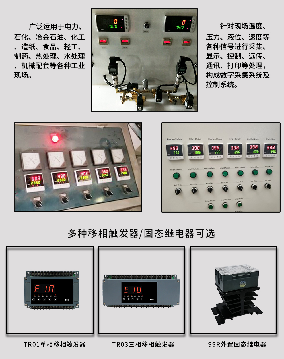 數(shù)顯儀表與溫控器 顯示控制儀 模糊PID溫控器 人工智能調(diào)節(jié)儀 手動(dòng)操作器 流量積算儀 數(shù)字顯示容積儀 多路巡檢儀 導(dǎo)軌式數(shù)顯表 導(dǎo)軌式溫控器 導(dǎo)軌式數(shù)顯溫度變送器 導(dǎo)軌流量積算儀 導(dǎo)軌多路巡檢儀 壁掛式數(shù)顯表 壁掛式溫控器 閃光報(bào)警器 移相觸發(fā)器 固態(tài)繼電器