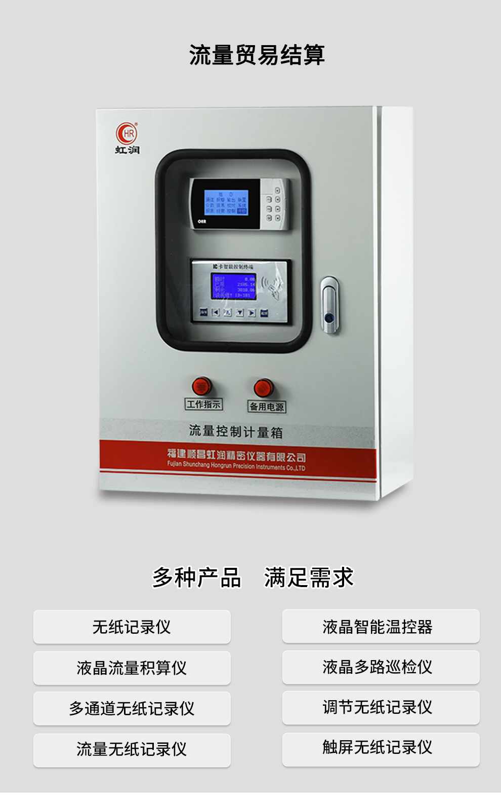 虹潤公司是專業生產流量積算儀的國家專精特新“小巨人”企業。生產的液晶熱(冷)量積算記錄儀,具有適配各類測量介質及裝置,通道之間相互隔離,帶貿易結算功能,RS485/RS232通訊等特點。產品獲得一種流量積算儀、一種平板式無紙記錄儀等2項國家發明專利,主持起草物聯網智能記錄儀表通用技術條件、封閉管道中流體流量的測量、基于HART協議的電磁流量計等3項國家標準,以及通信系統多通道數據采集控制終端規范、艦船用電磁流量計等2項軍用標準,以及空間數據與信息數據傳輸系統等2項航天標準。參與國際5G標準制定,取得液晶流量熱能積算控制儀等4項相關軟件著作權。產品廣泛應用于石化、冶金、制藥、環保能源、農業灌溉、污水處理系統等諸多領域。