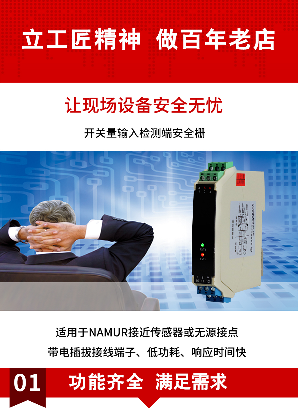 虹潤(rùn)公司是專業(yè)生產(chǎn)隔離器的國(guó)家專精特新“小巨人”企業(yè)。生產(chǎn)的隔離式安全柵涵蓋信號(hào)開(kāi)關(guān)量輸入、電壓輸入、電流輸入、熱電阻輸入、熱電偶輸入、頻率輸入等多種產(chǎn)品類型。產(chǎn)品獲得具備減震抗干擾能力的溫度變送器、信號(hào)隔離器、一種二端子模塊、無(wú)源信號(hào)隔離器等4項(xiàng)國(guó)家發(fā)明專利,主持起草物聯(lián)網(wǎng)智能溫度儀表、現(xiàn)場(chǎng)設(shè)備工具(FDT)接口規(guī)范、工業(yè)過(guò)程測(cè)量和控制系統(tǒng)用溫度變送器等3項(xiàng)國(guó)家標(biāo)準(zhǔn),以及通信系統(tǒng)多通道數(shù)據(jù)采集控制終端規(guī)范軍用標(biāo)準(zhǔn)。參與國(guó)際5G標(biāo)準(zhǔn)制定,取得智能隔離式安全柵等4項(xiàng)相關(guān)軟件著作權(quán)。產(chǎn)品廣泛應(yīng)用于石油、電力、化工,冶金、智能制造、污水處理等諸多行業(yè)。