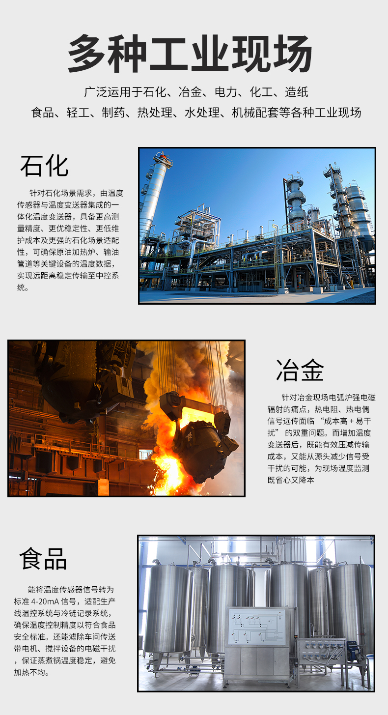 虹潤公司是專業生產溫度變送器的國家專精特新“小巨人”企業。生產的智能溫度變送器,具有適配各類溫度傳感器,精度高,穩定性好,通過編程線修改輸入信號類型及量程,高抗干擾等特點。該產品不僅通過HART基金會認證、德國萊茵 CE 認證與 SIL 功能安全認證,還獲得具備減震抗干擾能力的溫度變送器、信號隔離器、一種二端子模塊、無源信號隔離器等4項國家發明專利,主持起草物聯網智能溫度儀表、現場設備工具(FDT)接口規范、工業過程測量和控制系統用溫度變送器等3項國家標準,以及通信系統多通道數據采集控制終端規范軍用標準,參與國際5G標準制定,取得智能溫度變送器、HART溫度變送器等3項相關軟件著作權。產品廣泛應用于石油、化工、電力、冶金、制藥、食品、水處理等各種工業領域。