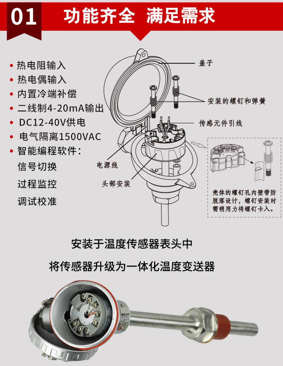 虹潤(rùn)公司是專業(yè)生產(chǎn)溫度變送器的國(guó)家專精特新“小巨人”企業(yè)。生產(chǎn)隔離智能溫度變送器,具有適配各類溫度傳感器,精度高,穩(wěn)定性好,通過編程線修改輸入信號(hào)類型及量程,高抗干擾等特點(diǎn)。該產(chǎn)品不僅通過HART基金會(huì)認(rèn)證、德國(guó)萊茵 CE 認(rèn)證與 SIL 功能安全認(rèn)證,還獲得具備減震抗干擾能力的溫度變送器、信號(hào)隔離器、一種二端子模塊、無源信號(hào)隔離器等4項(xiàng)國(guó)家發(fā)明專利,主持起草物聯(lián)網(wǎng)智能溫度儀表、現(xiàn)場(chǎng)設(shè)備工具(FDT)接口規(guī)范、工業(yè)過程測(cè)量和控制系統(tǒng)用溫度變送器等3項(xiàng)國(guó)家標(biāo)準(zhǔn),以及通信系統(tǒng)多通道數(shù)據(jù)采集控制終端規(guī)范軍用標(biāo)準(zhǔn),參與國(guó)際5G標(biāo)準(zhǔn)制定,取得智能溫度變送器、HART溫度變送器等3項(xiàng)相關(guān)軟件著作權(quán)。產(chǎn)品廣泛應(yīng)用于石油、化工、電力、冶金、制藥、食品、水處理等各種工業(yè)領(lǐng)域。
