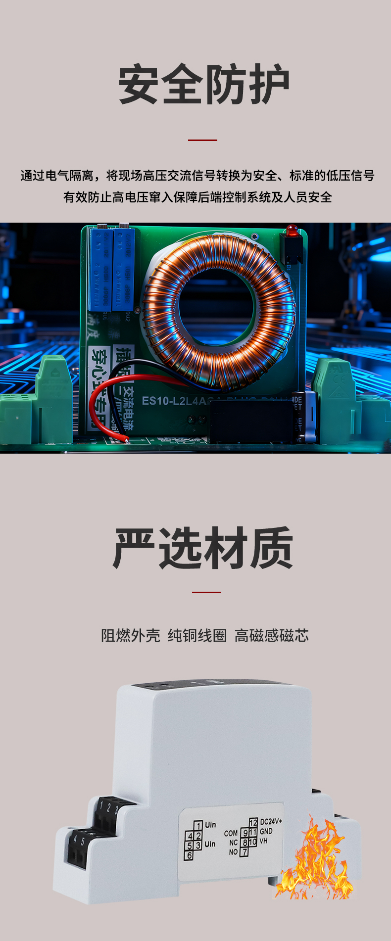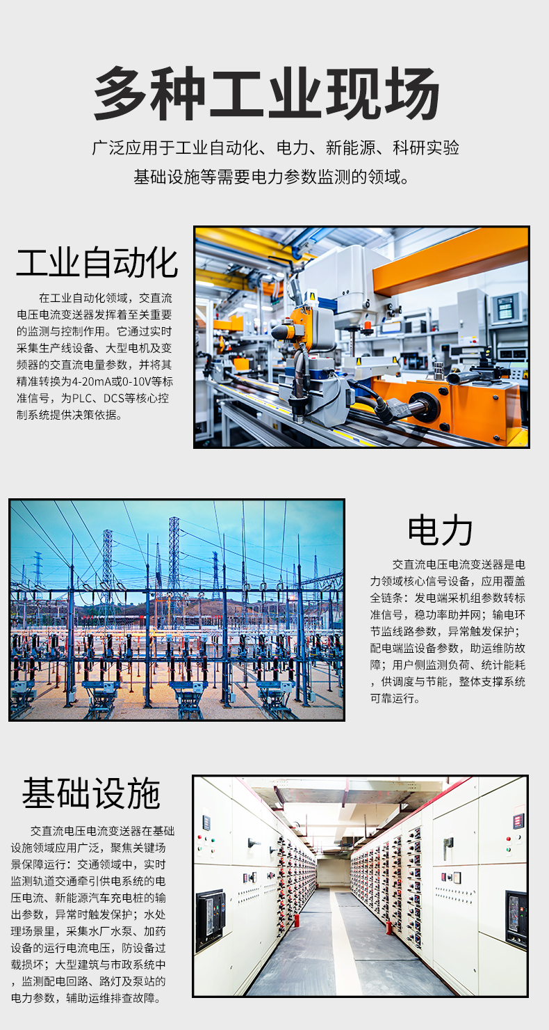 虹潤公司是專業生產電流傳感器的國家專精特新“小巨人”企業。生產的交流電壓/電流變送器,具有交流電壓/電流輸入、高精準測量、響應速度快、高抗干擾、全隔離設計等特點。產品獲得一種交流信號變送器、交直流信號轉換電路、基于DCS技術的盤裝式三相電量表等3項國家發明專利,主持起草工業過程控制系統用模擬輸入兩位或多位輸出儀表國家標準,直流漏電流傳感器規范、通信系統多通道數據采集控制終端規范等2項軍用標準,以及現場設備集成等5項智能制造國家標準,參與國際5G標準制定。產品廣泛應用于工業自動化、電力、新能源、科研實驗基礎設施等需要電力參數監測的領域。