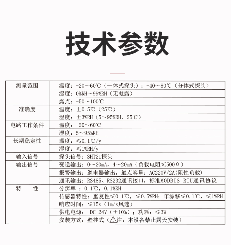 虹潤公司是專業(yè)生產(chǎn)環(huán)境監(jiān)測儀表的國家專精特新“小巨人”企業(yè)。生產(chǎn)的一體式溫濕度變送器,具有溫度、濕度、露點高精準的測量與變送,報警繼電器輸出,RS485/RS232通訊,IP65防護等級等特點。產(chǎn)品獲得一種手持式低功耗溫濕度檢測儀、大屏幕溫濕度記錄儀等2項國家發(fā)明專利,主持起草物聯(lián)網(wǎng)智能溫度儀表通用技術(shù)條件、冷鏈溫度記錄儀等2項國家標準,以及通信系統(tǒng)多通道數(shù)據(jù)采集控制終端規(guī)范軍用標準,以及現(xiàn)場設(shè)備集成等5項智能制造國家標準,參與國際5G標準制定,取得溫濕度儀表等3項相關(guān)軟件著作權(quán)。產(chǎn)品廣泛應(yīng)用于工業(yè)現(xiàn)場、農(nóng)業(yè)大棚、倉儲物流、地下管廊、養(yǎng)殖孵化、配電機房等諸多領(lǐng)域。